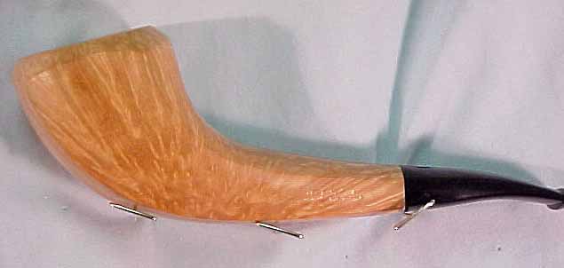 The next pipe came from a large cross cut block I found while looking for a large block to put the hex- swirl pipe on. It was a little too small for it but I couldn t pass up trying the real tight birdseye I saw all over the block. This one is UB 223 and is in the Unique Bent section of the web catalog