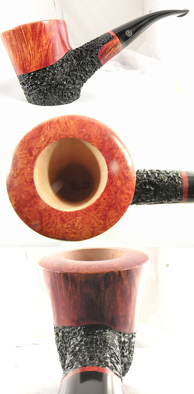 The next pipe for Dan Groseck is an enlarged version of my "Cabin Pipe" which was the basis for the 2002 Christmas pipe. It s shown here in Size 6 Black & Tan 1 star: