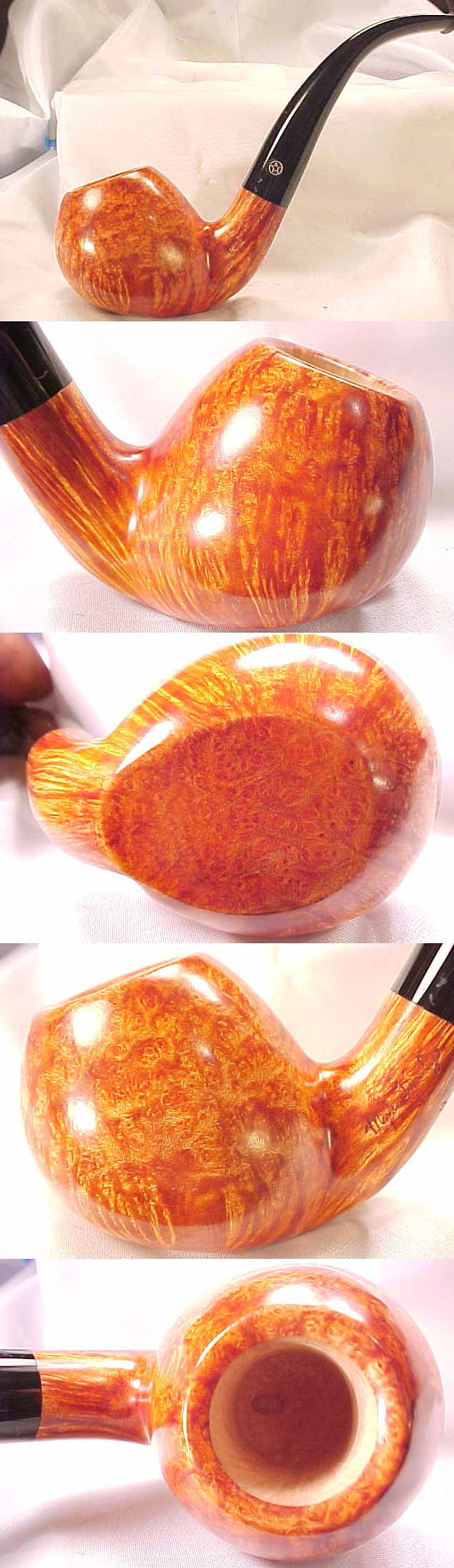 Todays work consists of 3 pipes for the web store. and one very special order. I ve been hitting my share of nice briar lately . A couple of weeks ago David Napierkowski asked me to make him a very large Bulldog. We decided on B size which isn t quite magnum but still pretty large. He wanted a nice smooth straight grain. A tall order. Well I got lucky and came up with a 3 Star Size B Bulldog with a curved diamond shank.: