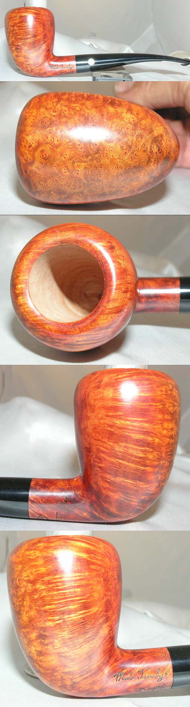 Next are two special order horns. The first one is a Pristine 4 panel with an amber stem. I also had to do a difficult repair for the same gentleman. It was a pipe Curt made in the 80 's with a one piece briar stem combo. Not wanting to replace the briar I was able to just replace the small acyrlic end.The pipe was not made with repair in mind !