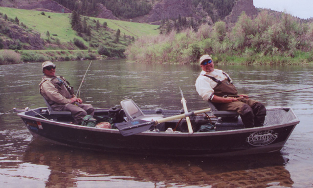 Jay and I in Rad s drift boat taking off from Mtn. Palace boat launch in the Canyon